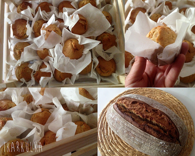 Náš klasický kváskový chleba a jednoduché vanilkové muffins: